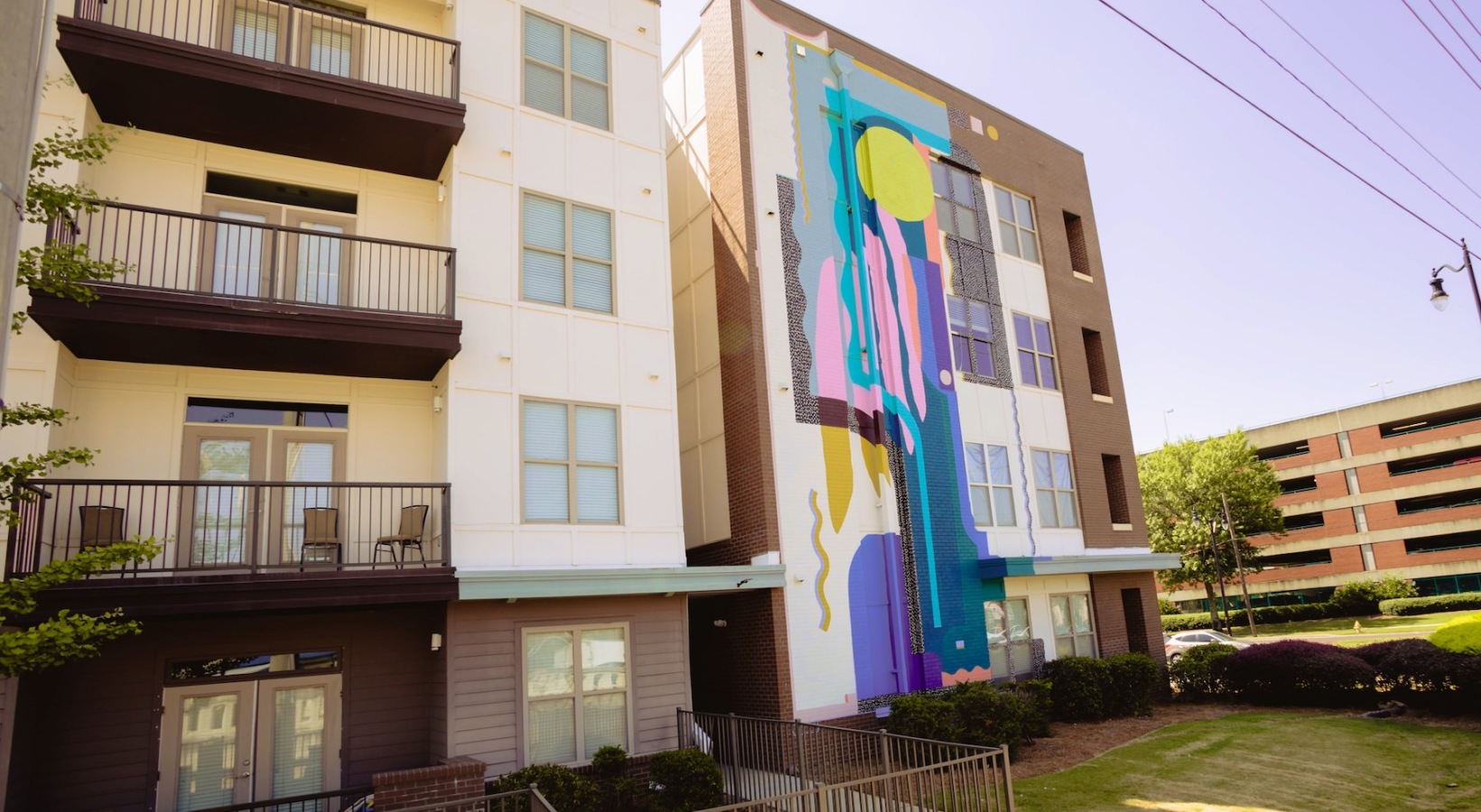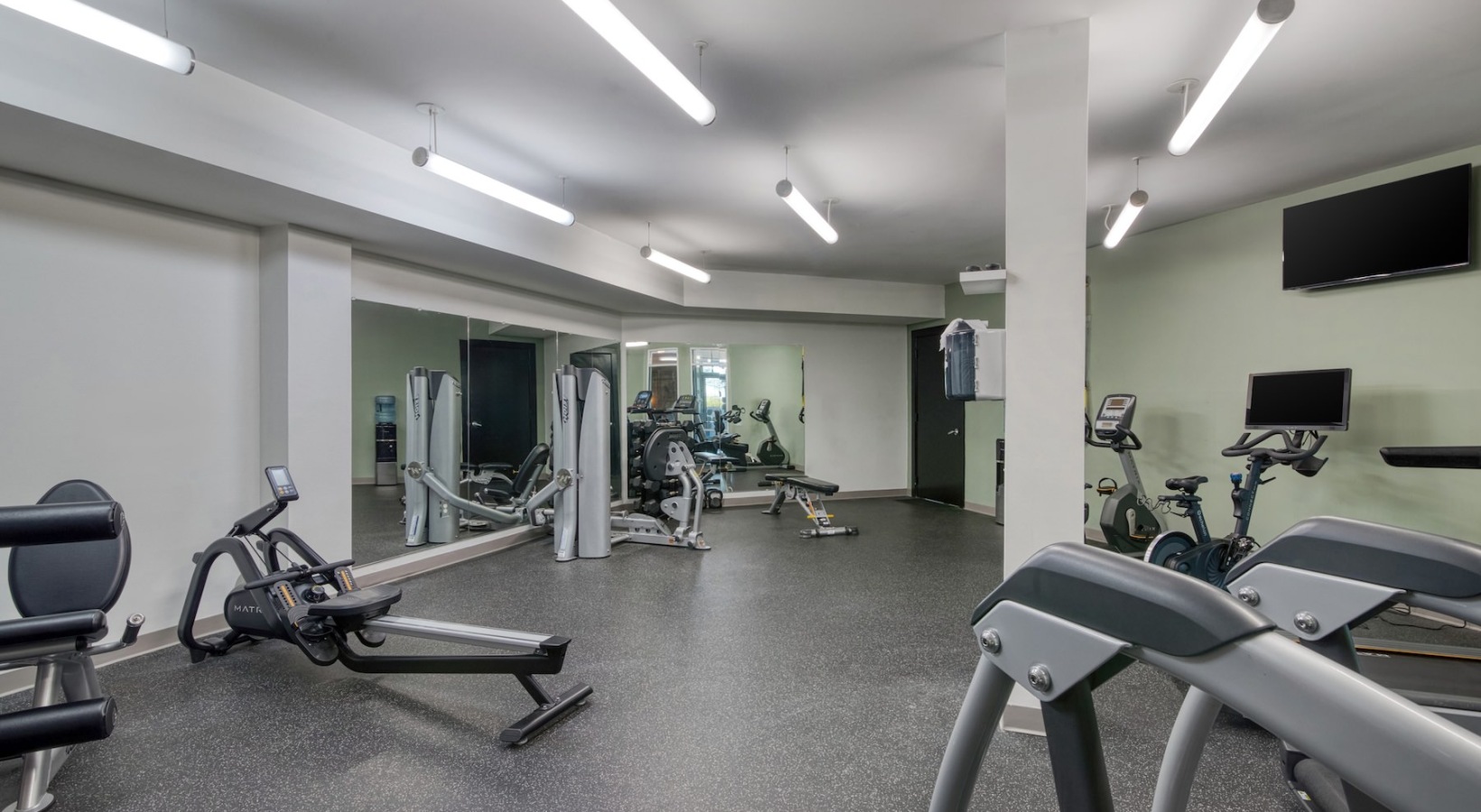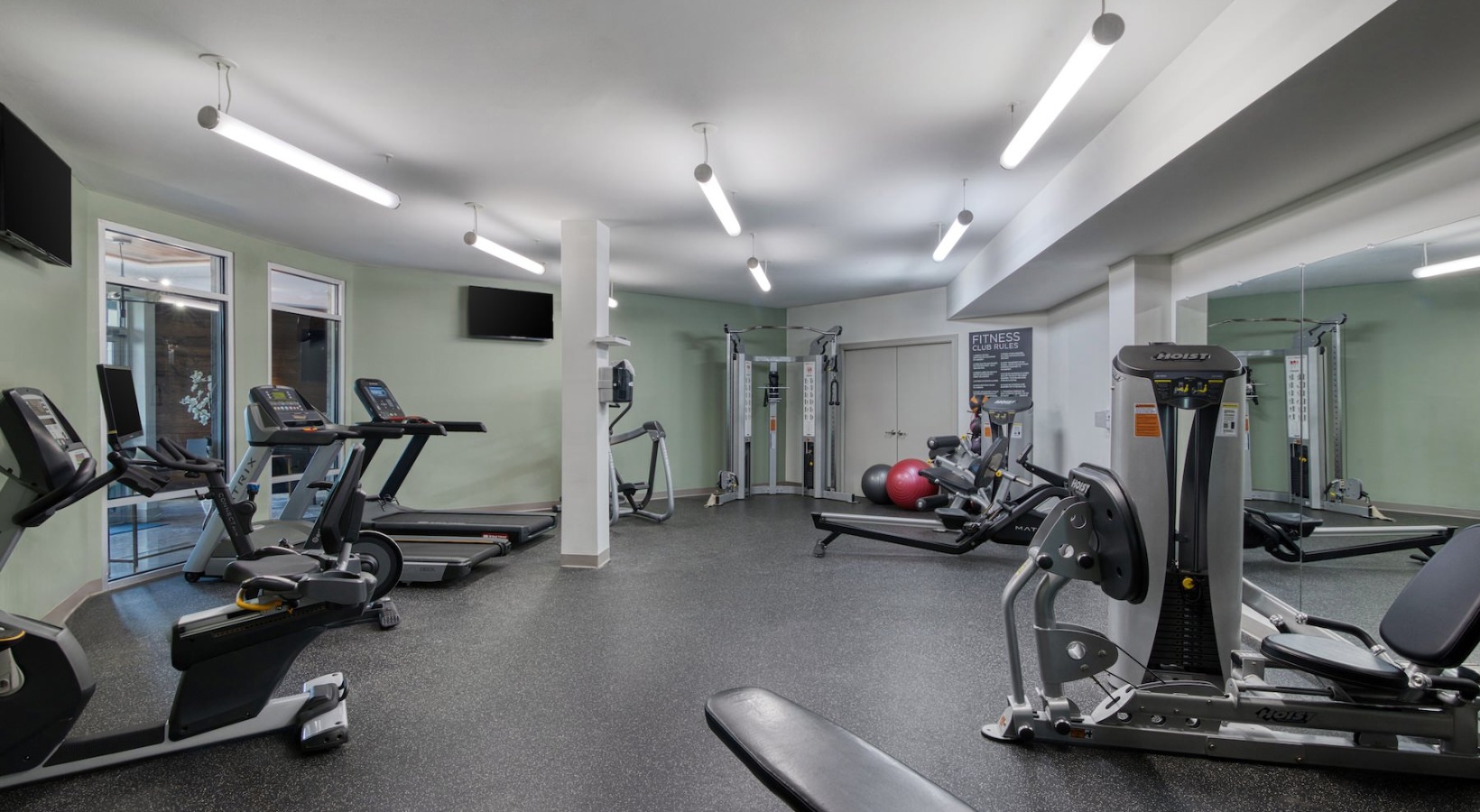 a gym with exercise equipment a gym with exercise equipment a gym with exercise equipment Open and well-lit fitness center Open and well-lit fitness center a gym with exercise equipment a well-lit mail room an outdoor lounge with a fireplace, table and chairs an outdoor patio with tables and chairs a lounge with chairs and a tv an elevator a clubroom with a tv and chairs an outdoor lounge area with a fireplace and chairs a courtyard with a table, chairs and an umbrella a building with a mural a sidewalk with buildings and a mural a building with multiple levels and many windows a building with many windows and multiple levels an exterior of a building with many windows a spacious parking area