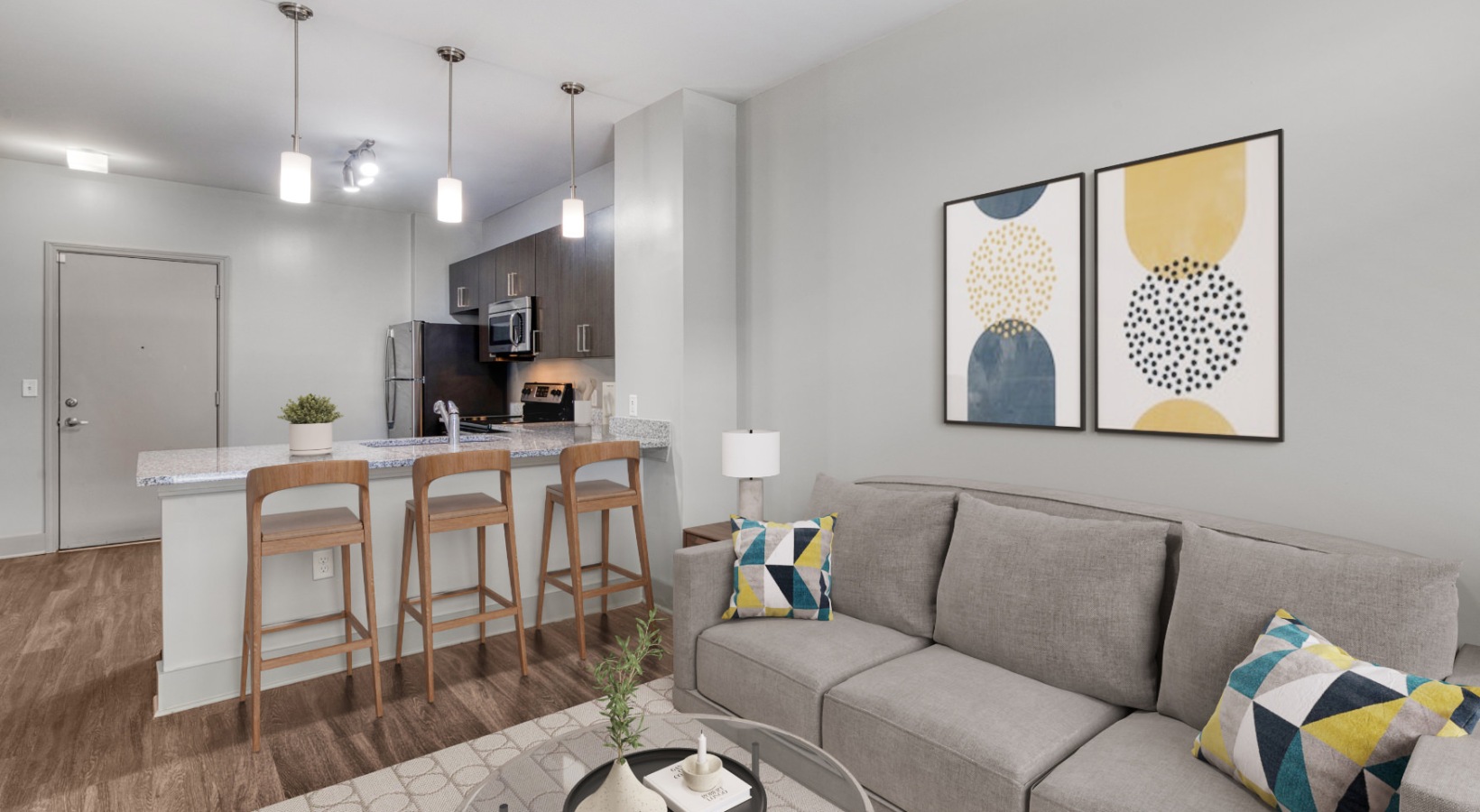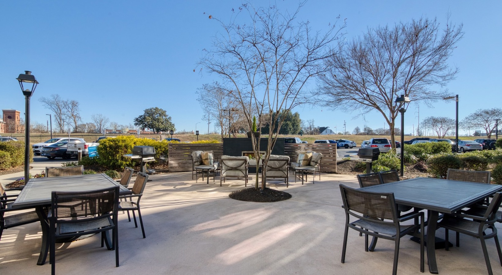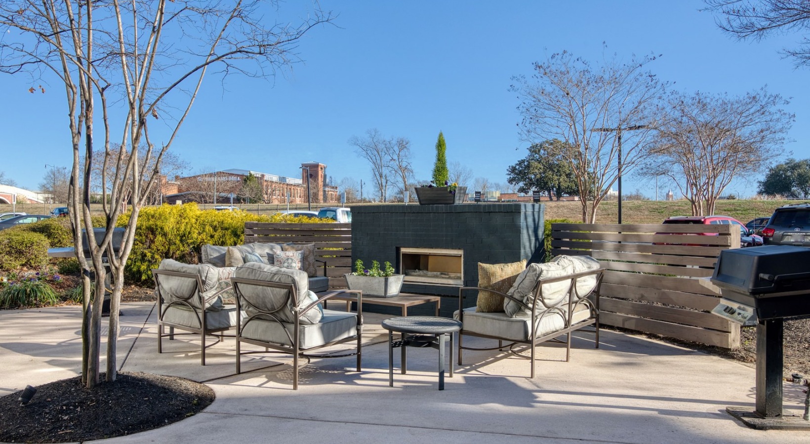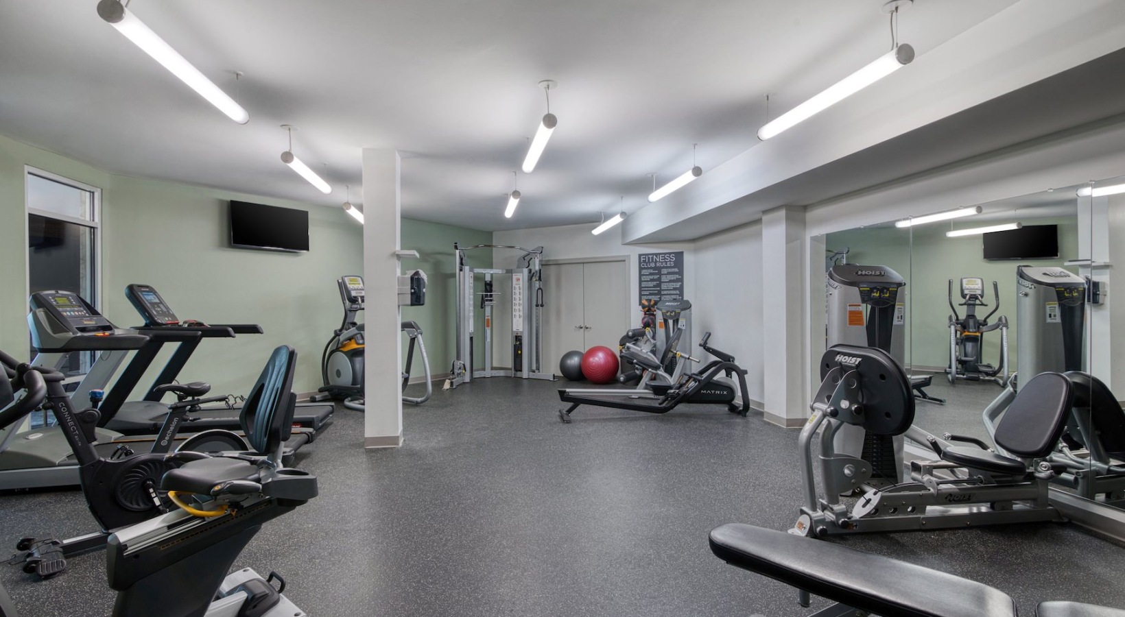 a gym with exercise equipment a gym with exercise equipment a gym with exercise equipment Open and well-lit fitness center Open and well-lit fitness center a gym with exercise equipment a well-lit mail room an outdoor lounge with a fireplace, table and chairs an outdoor patio with tables and chairs a lounge with chairs and a tv an elevator a clubroom with a tv and chairs an outdoor lounge area with a fireplace and chairs a courtyard with a table, chairs and an umbrella a building with a mural a sidewalk with buildings and a mural a building with multiple levels and many windows a building with many windows and multiple levels an exterior of a building with many windows a spacious parking area