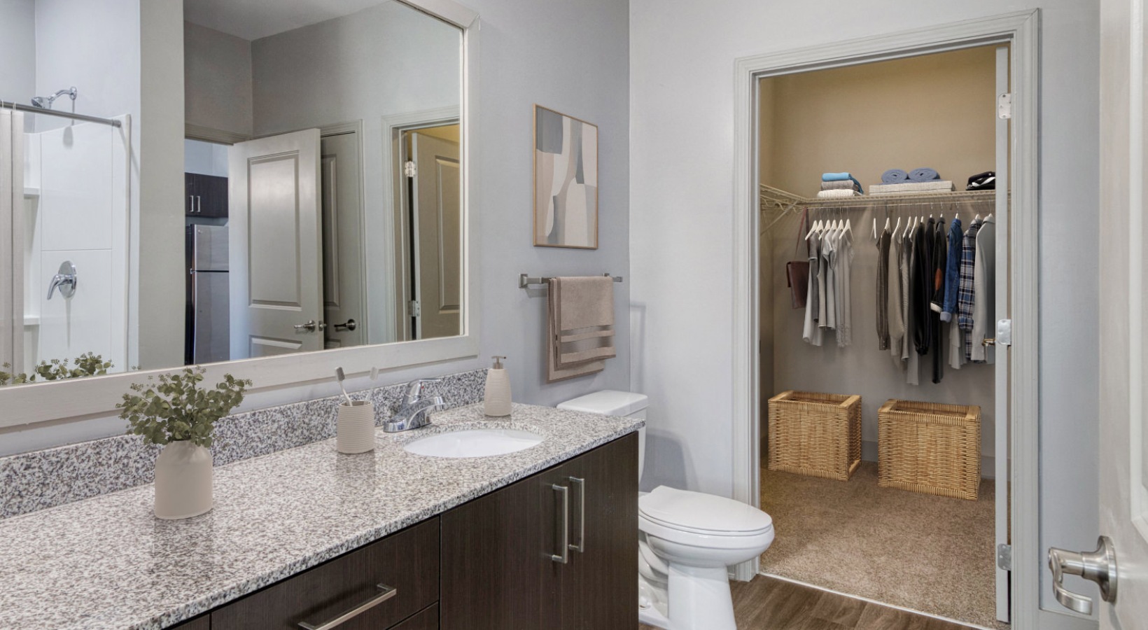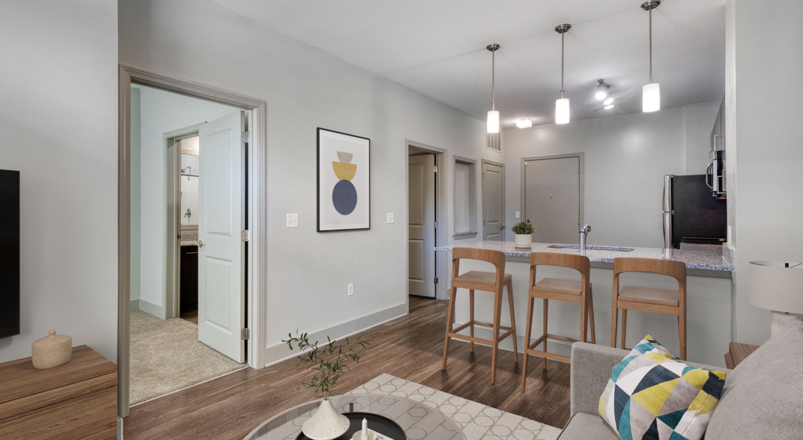a kitchen with wood cabinets a kitchen with wood cabinets a living room with a couch and chairs a living room with a couch and chairs a living room with a couch and a coffee table a living room with a couch and a tv a bedroom with a bed and a lamp a bedroom with a bed and a lamp a bathroom with a closet, toilet and a sink a bathroom with a shower and a sink a closet with white walls and shelves a washer and dryer in a closet Well-lit kitchen with ample counter space Well-lit kitchen with ample counter space Well-lit kitchen with ample counter space Well-lit kitchen with ample counter space Open space living area with natural lighting Open space living area with natural lighting Bedroom with natural lighting and high ceilings Bedroom with natural lighting and high ceilings a carpeted bedroom with a large window a spacious bathroom with a sink and a large mirror a bathroom with a walk-in closet a walk-in closet with ample shelving a laundry space with a washer and a dryer